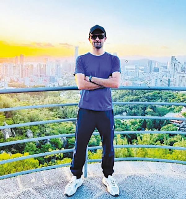 Muhammad Mudassar poses at Xiamen Botanical Garden. [Photo provided to China Daily]