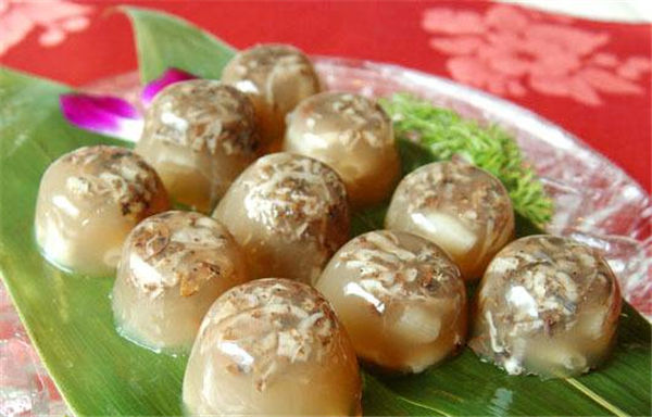 Sipunculid worm jelly is a delicacy popular in Southeast Fujian. it is a kind of seafood which is said to be invented by Zheng Chenggong, a patriotic hero of China.