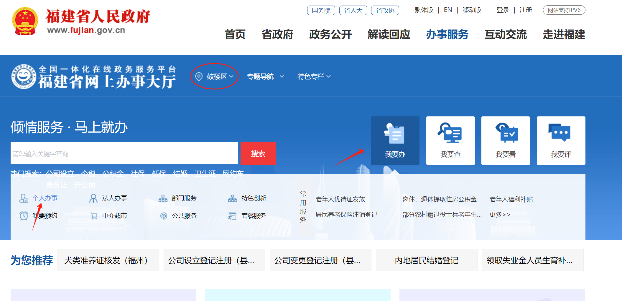 方式一:福建省網上辦事大廳
