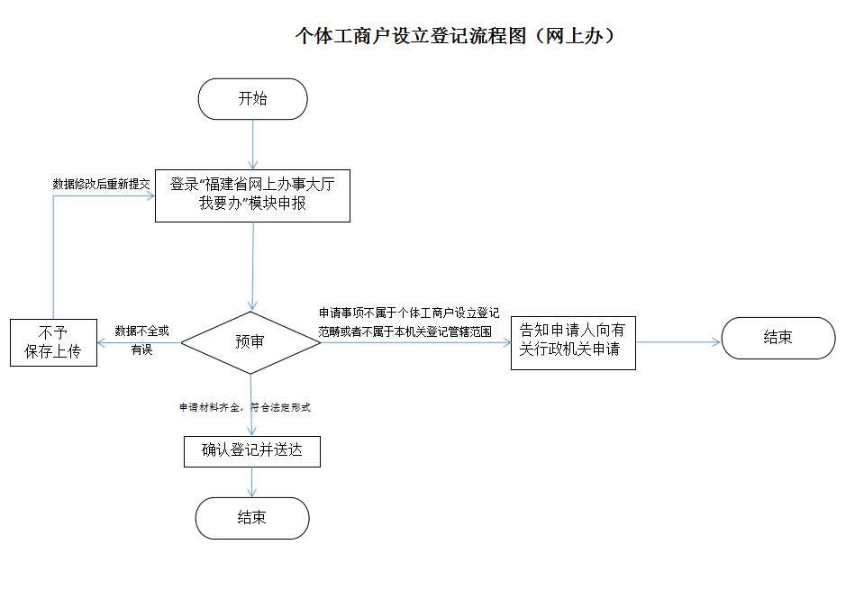 申請人可登錄“福建省網上辦事大廳”,登錄后在搜索框內直接輸入“個體工商戶設立登記”選擇對應行使層級在線辦理即可。