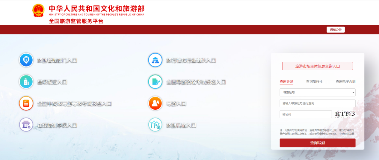 (一)全國旅游監管服務平臺-查詢導游