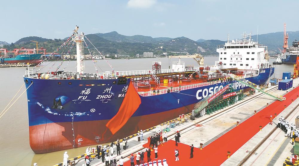20日,福建船政為中遠(yuǎn)海運(yùn)特運(yùn)建造的9000DWT特種液貨船(MW518-2)正式交船并命名為“福州灣”(如圖)。該船不僅是全國首艘獲CCS商用入級認(rèn)證的低噪聲運(yùn)輸船,還是全球首艘經(jīng)船級社認(rèn)可的三維數(shù)字化交付船舶。